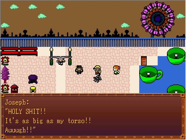 Cascada:Hey! Polnareff:I STILL don't understand why you make us fight those will-o-wisps for two hours every time we stop in town. You being crazy is the only explanation! Kakyoin: Don't mention it, Polnareff. It wasn't for naught. Baby: (H-he's not twisting my neck off because I'm a baby... What a fool! Kakyoin... Your naivete will be the death of you! you're still in my nightmare world!)
