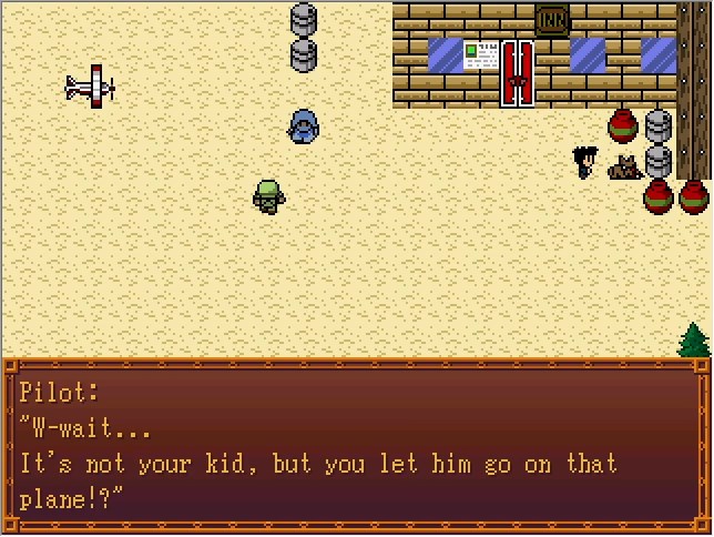 A simple but effective tile technique to communicate nighttime. Honestly, like 30% of why I'm doing this Let's Play is to try and absorb RPG Maker tricks via osmosis.