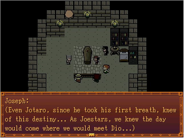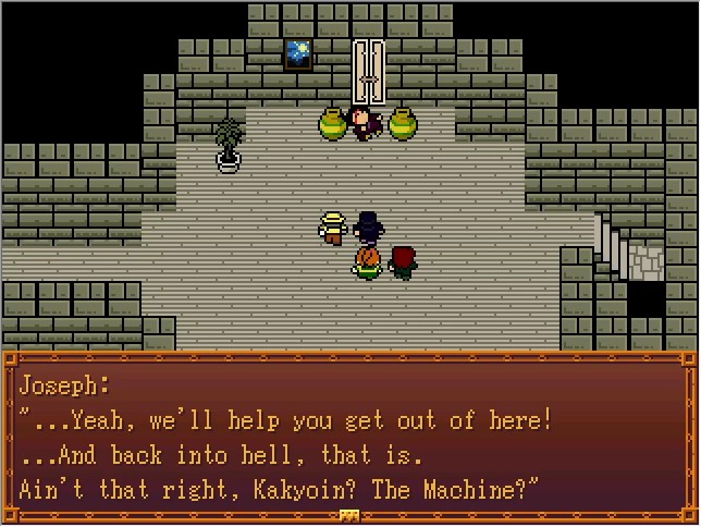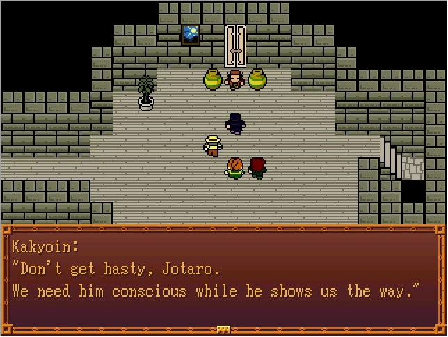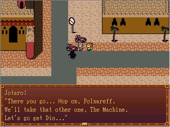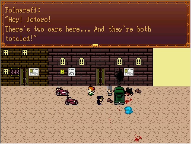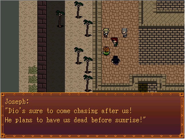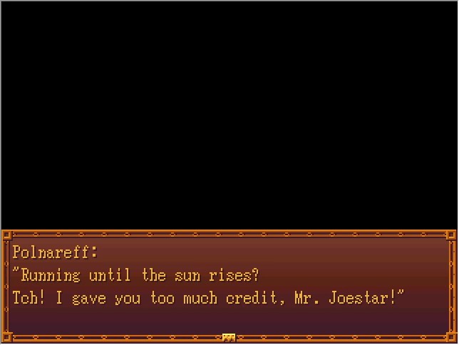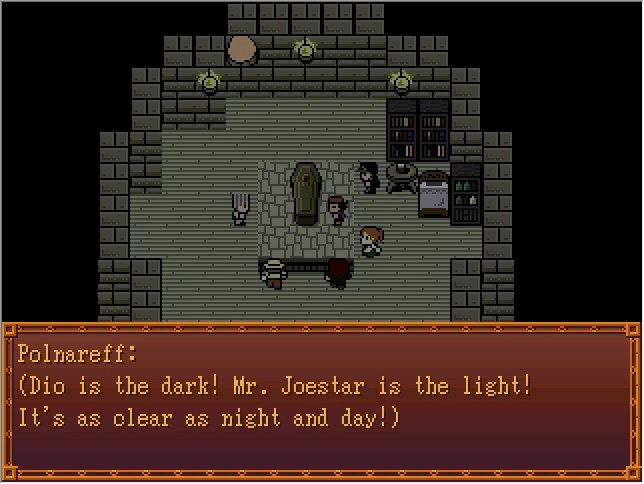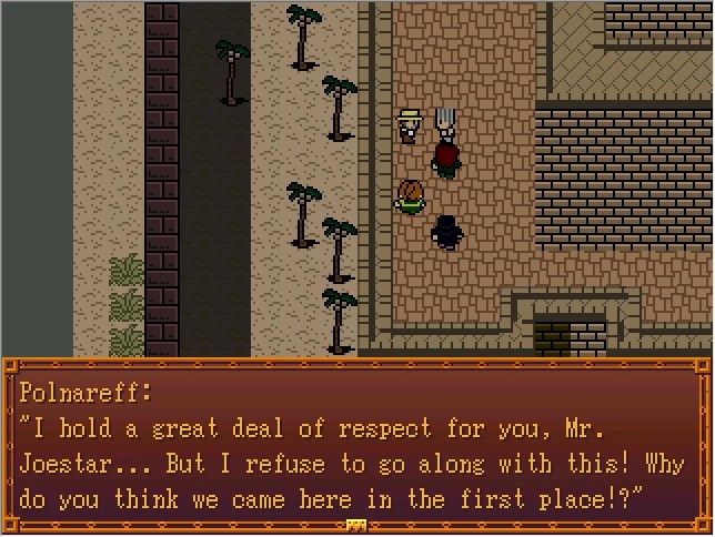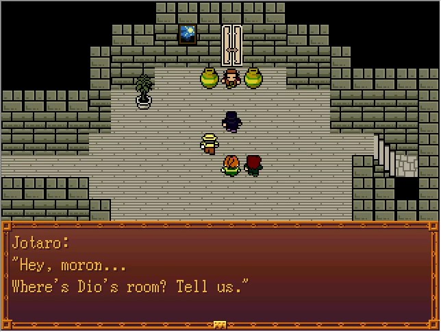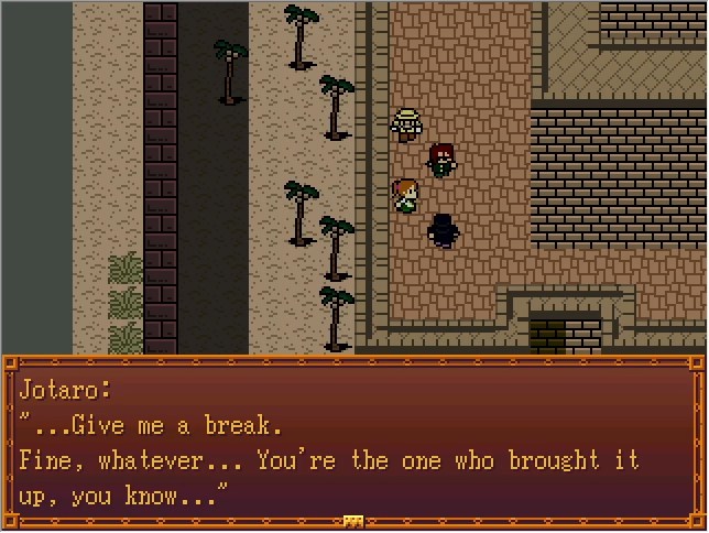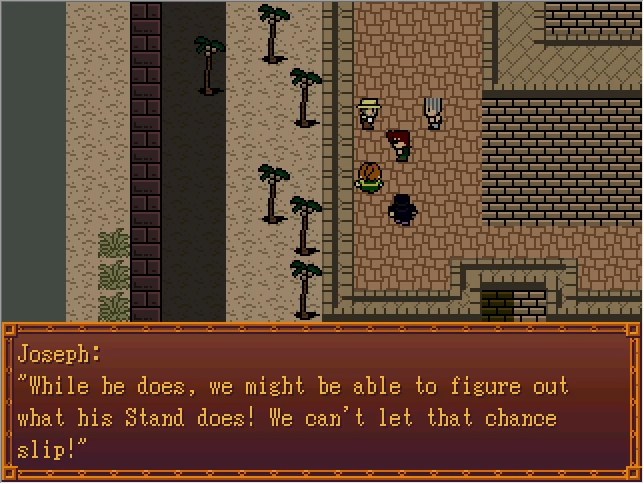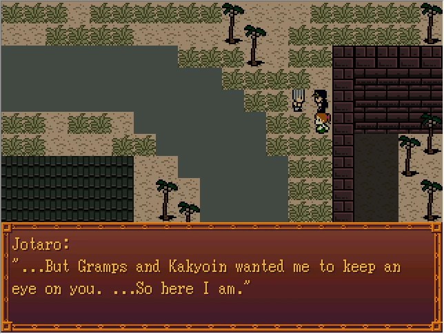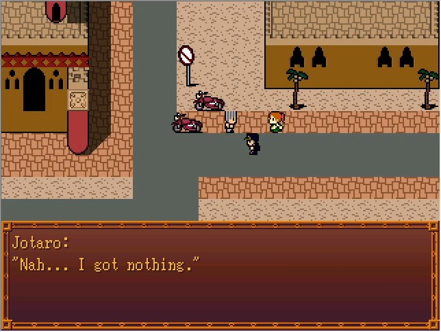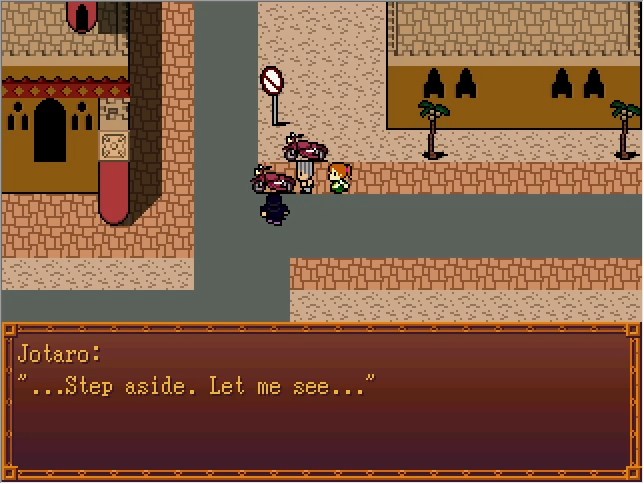 There'd be no need to make a completely different map for a short scene like this, so I am tickled that it's like, maybe twenty tiles away from the previous scene. We're probably still within earshot of Joseph and Kakyoin.