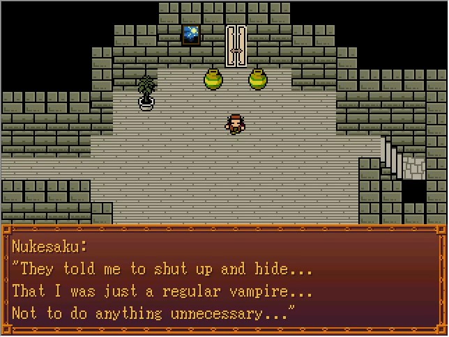 Nukesaku: W-wait! Even I can't go in there! Jotaro: Why is that? Nukesaku: The walls are riddled with holes thanks to that stupid Vanilla Ice... I'm a vampire... If I touch the sunlight, I'll disintegrate! S-so I can't show you, see? Joseph: So that's what all those tremors were... Cascada: He must have a lot of power to punch through walls of stone... I hope the others are okay... Kakyoin: Hm... In that case, if we bag you up and carry you, you'll be fine, right? Nukesaku: N-n-no thank you! There's no need for you to go through all that trouble! I couldn't possibly inconvenience you so! Kakyoin: You can't escape, if that was what you were thinking. Grab a curtain from somewhere, guys. Nukesaku: Waaaaaahhh...