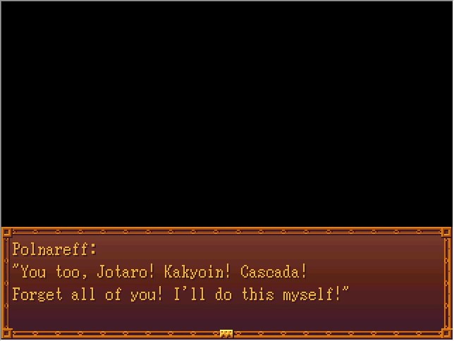 Jotaro: ............ Kakyoin: Or perhaps... it's the other way around... Cascada: ......(I should have leveled up Iggy more...) Kakyoin: !! Stop!! There's someone just ahead of us.