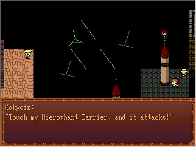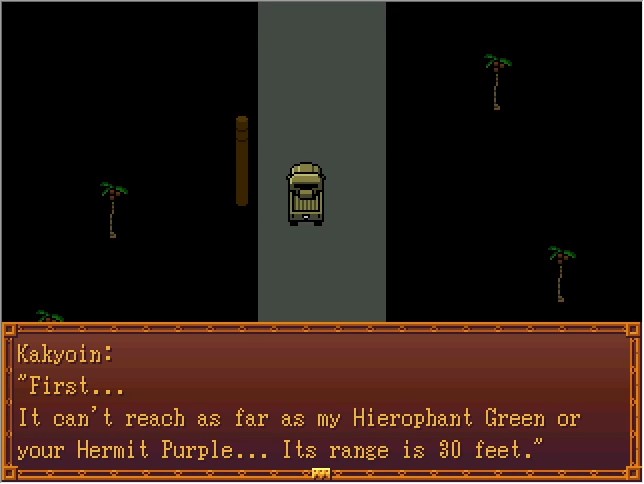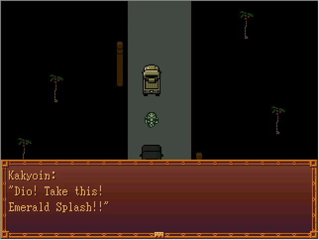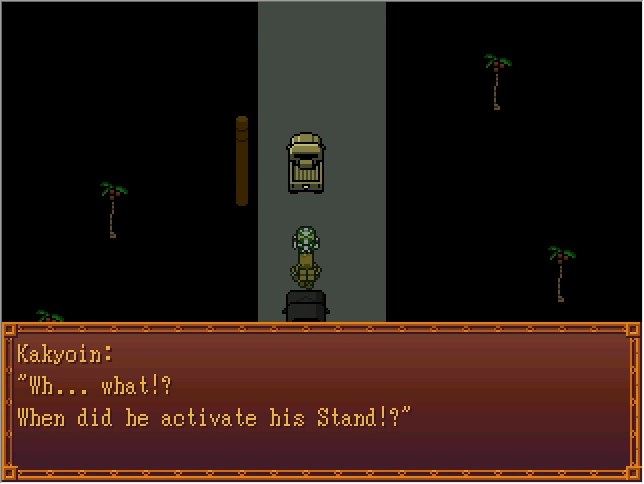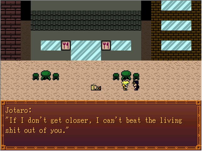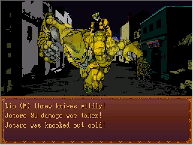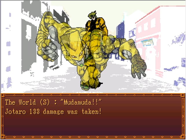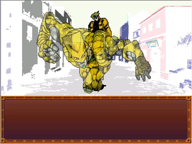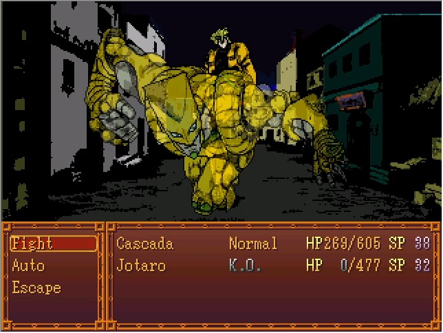 Okay, so, Jotaro's FP route is basically easy mode, in that (as far as I know) it's the only one where you can run from every fight and watch the cutscenes lifted straight from the manga. The downside is that this specific fight right here is the only time your player character gets to participate.