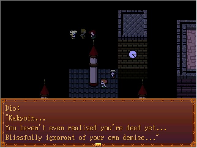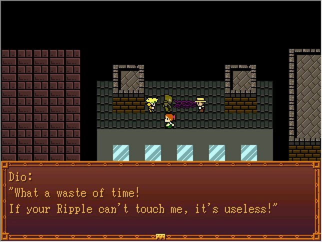 Dio: ............So you figured out The World's ability? Hmph... Suppose I should give you some credit. Joseph: Kakyoin was the one who figured it out! Don't act as if his death was in vain! Dio: And? What difference does it make? Your feeble Ripple won't save you!