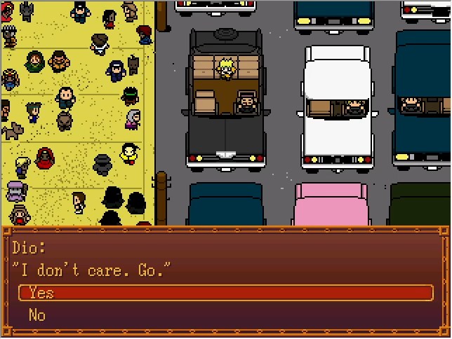 Dio: Tch... Too far away... I knocked him right out of The World's range... Senator Wilson Phillips: Aaaaugh! W... what's happening!? Dio: What makes you think I've any interest in explaining to the likes of you? Keep your eyes on the road. Dio: ............Hmph. Pointless...