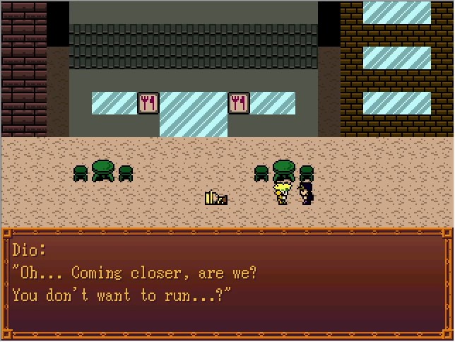 Dio: Hm... You... You ambushed me from behind? You have more guts than I thought. Jotaro: The Machine!! Cascada: Run, Jotaro! We can't win against him even if we both have him cornered! Jotaro:Who are you and what have you done with The Machine!? Dio: You think I'll let him get away so easily?