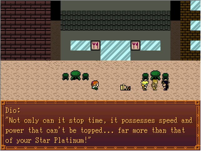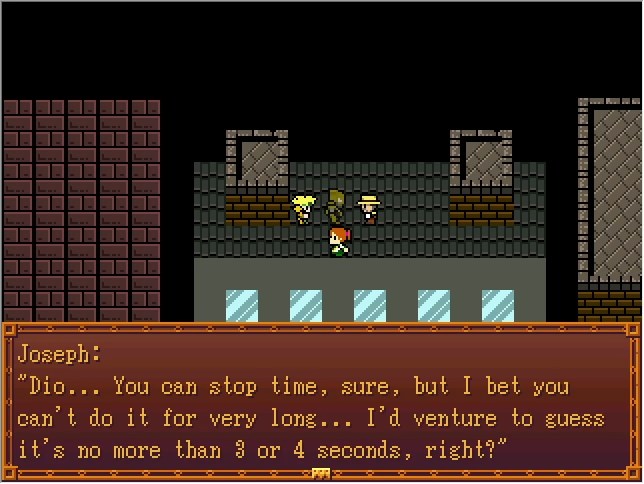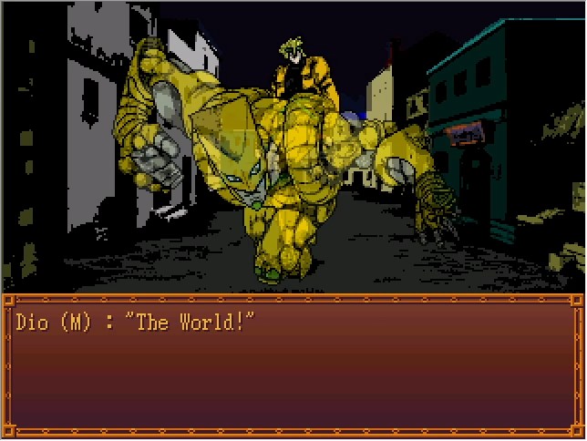 This is such a well-known reveal at this point that I assume anyone reading this Let's Play already knows. "ZA WARUDO" was an internet meme for years before JoJo really got popular westward. And as far as "we are so fucked" villain power level reveals go, it's got to be near the top of the list.