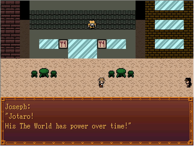Cascada:HEY I WASN'T DONE ASSHOLE Joseph: !! Jo... Jotaro!! Stay back! Don't come over here! Dio: Jotaro... Just who I wanted to see... But he's still out of my range... I'll take care of Joseph first...