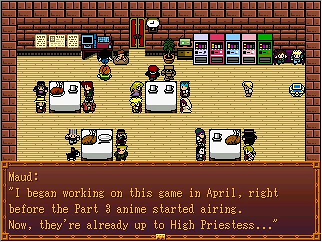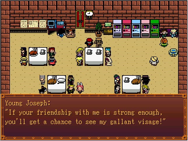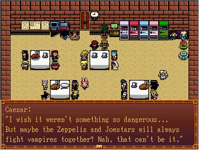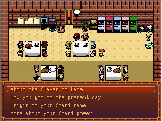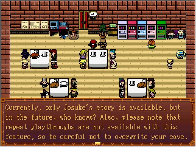 This is a new feature in version 2.0. Take a look at the vending machine to your right! Right now, only Josuke is available, but... I'd like to add more in the future, if I have time. Still the entire story has to be changed, so it might not be until a long while, if ever... 💧
