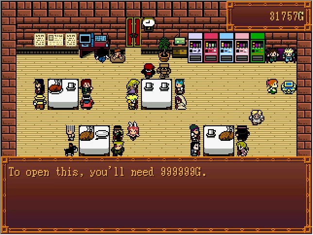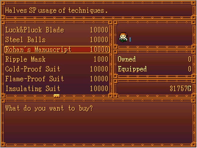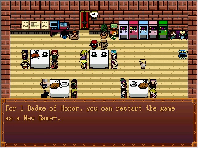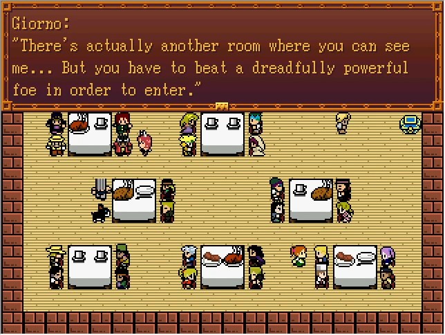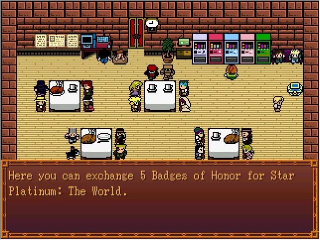 This is why Badges of Honor are so important. I didn't really go hugely out of my way to get any on this run, and we only have six; enough to NG+ and get either Star Platinum The World or King Crimson. Josuke's disc is right out. And if you somehow didn't keep a single one? You're just fucked. If you don't start NG+, then your "games cleared" counter won't increase either, since it's per save file rather than a global variable. And you only get to the Dev Room with endings where you fight Vins... that is, you need at least 30 FP.