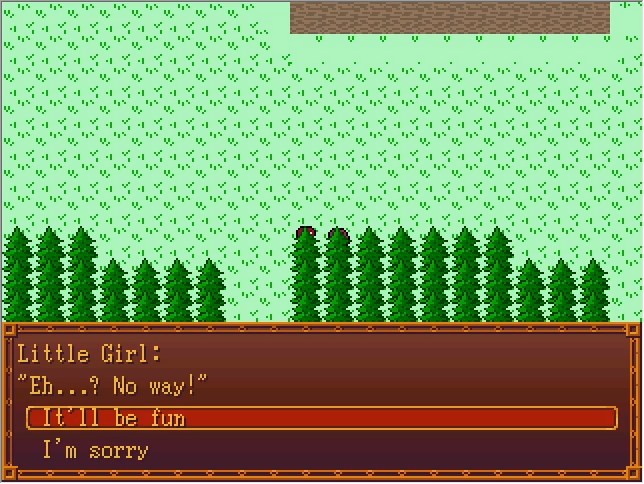 Aaand now it's weird. I stop here, but if you keep pressing, your character gets saddled with the "lolicon" trait. You can figure that one out yourself.