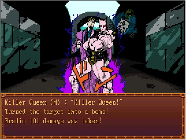 Quicksilver's powerful multi-target attacks take a bit to start rolling, but Deep Purple gets this at Level 2. Since we're a few levels ahead from Dragon Question and also wearing the endgame-tier Speedwagon Armor, every normal battle in Japan drops in one turn.