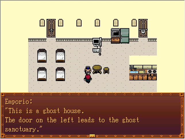 The Ghost House from Part 6! Every main hub map has an entrance to this place somewhere. Often it's in an incidental building with like one NPC inside.