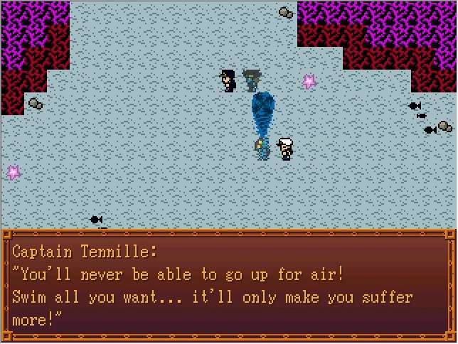 This event removes the boss fight's normal 10-turn limit. However, if you picked "Can't Swim" earlier, that takes precedence. Also it's not like this was gonna last anywhere near 10 turns in the first place.