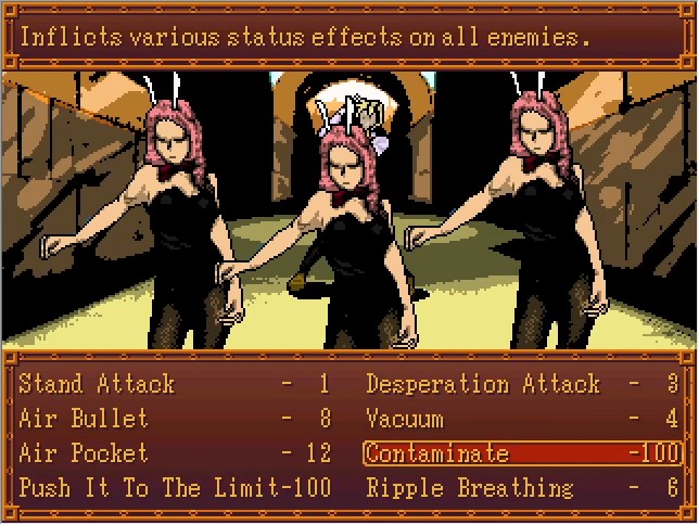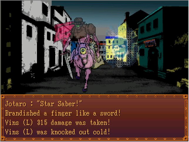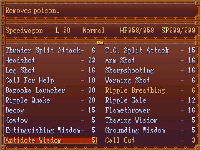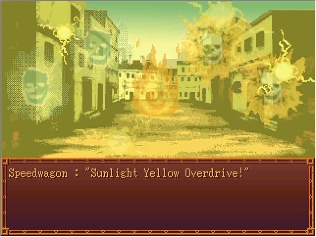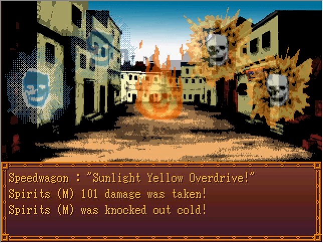 Speedwagon's got some basic physical and explosive skills, along with status-healing "Wisdom" skills in reference to how he thawed Will A. Zeppeli's frozen arm by swaddling it with his steaming abdominal muscles. Unfortunately, he's like Gallahad or early Iggy where you can't control him directly.