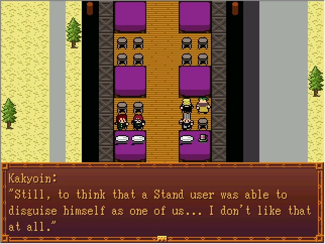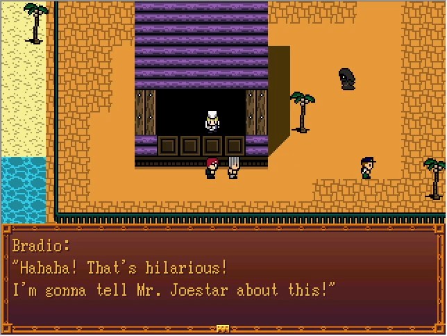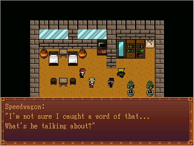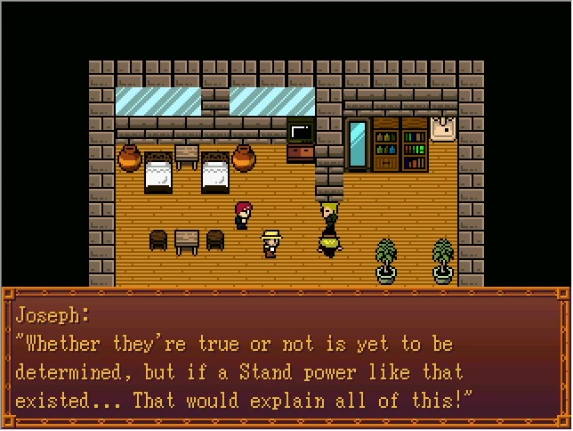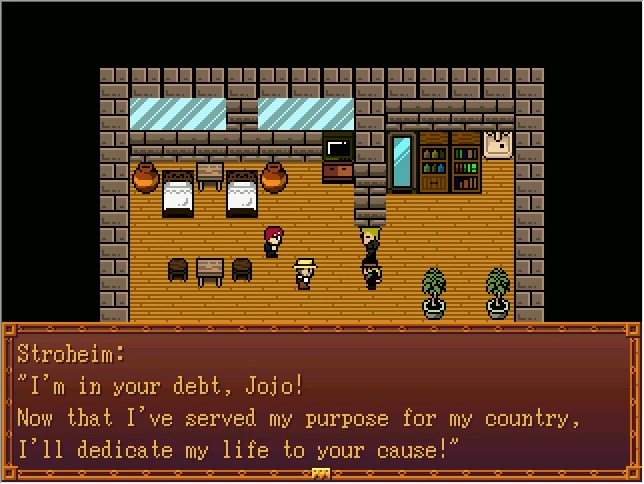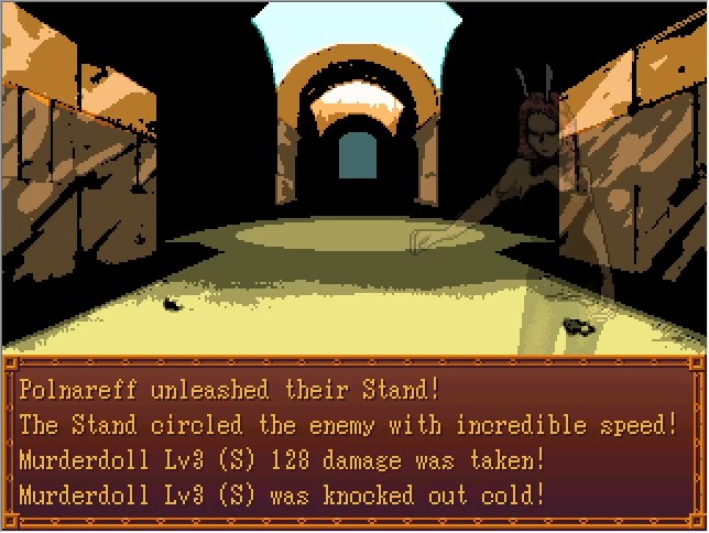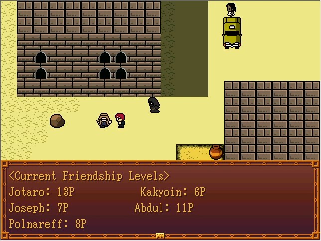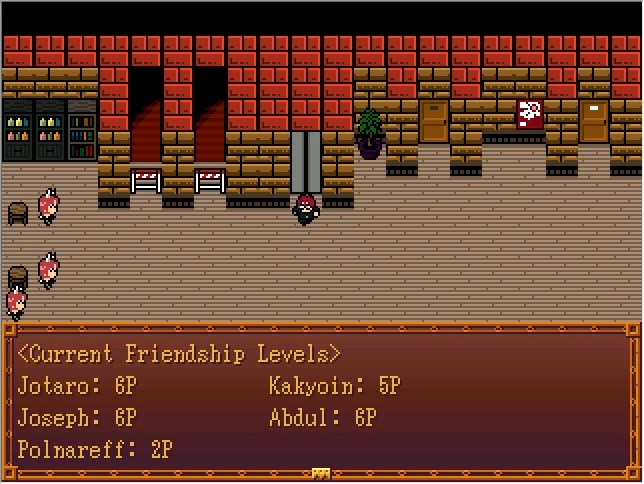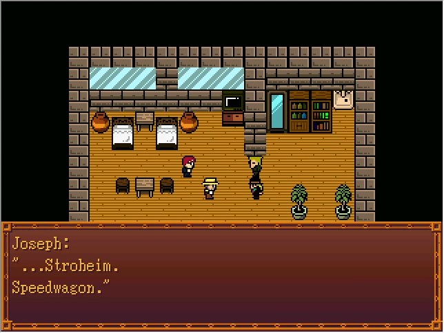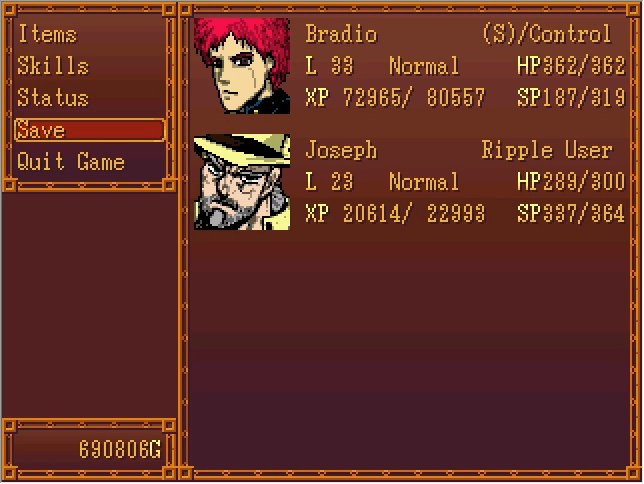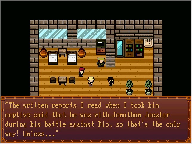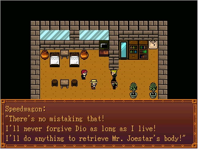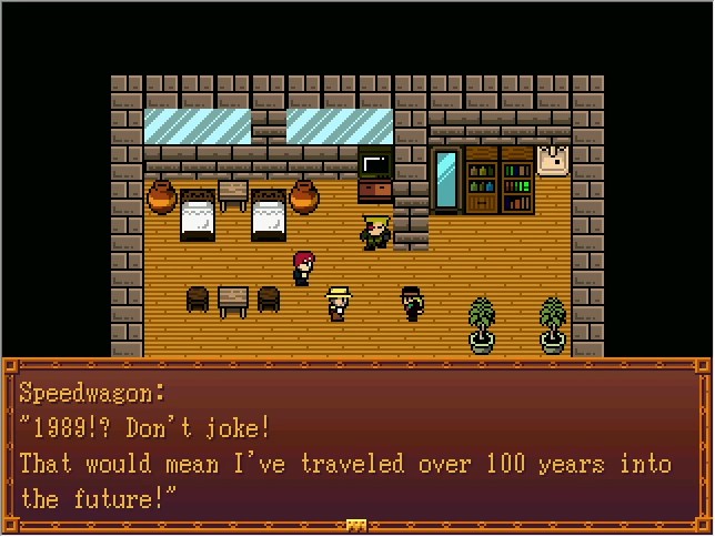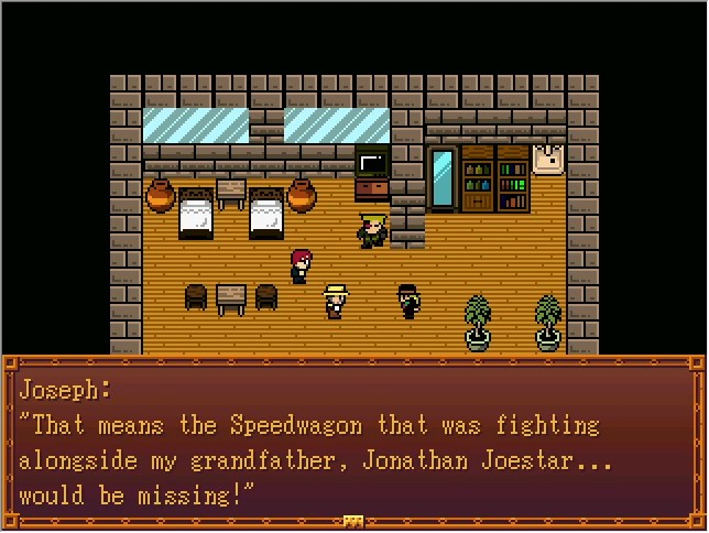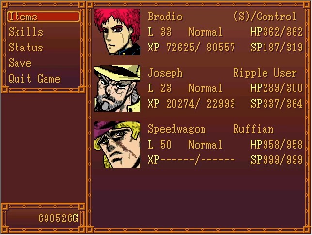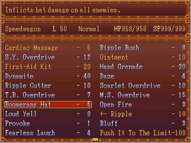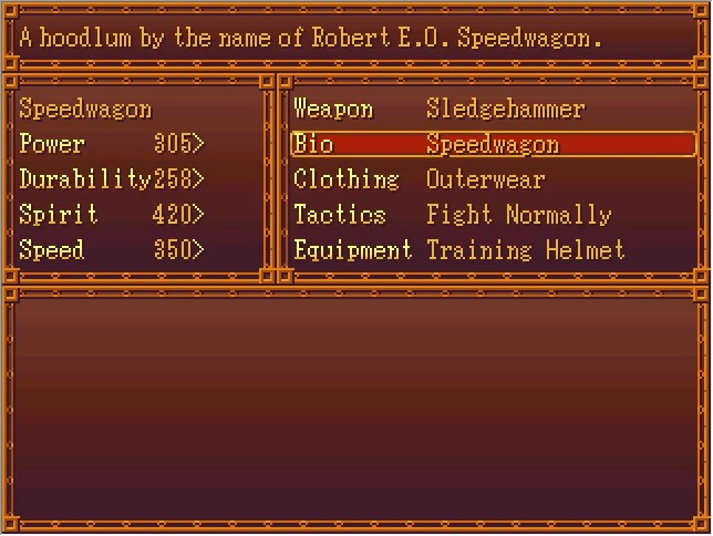 Speedwagon joins the party! Temporarily! He's not meant to join at level 50; we're still dealing with Deus Ex Machina aftereffects and I don't think the "reset party" Dev Room effect works on him due to said temporary status. If you're playing normally it would behoove you to actually run around and get him a few levels before going back to the hotel.