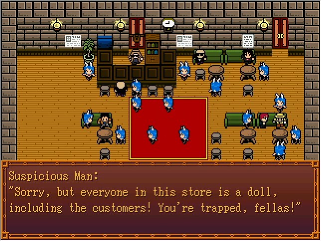 Every NPC on the map starts to chase you; you're going to get into a minimum of six or seven battles in a row. I believe this is also the only place in the game where the EX variant of Murderdolls appears.