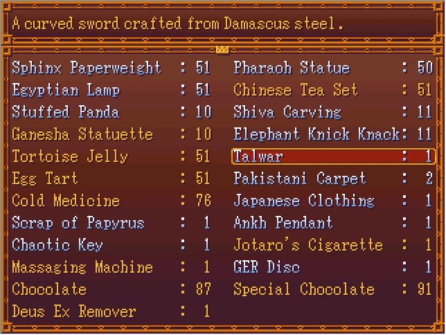 The Talwar is a re-usable battle item that makes a slashing attack. Useful in the right circumstances.