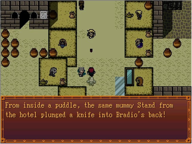 Joseph: What did you say!? Bradio: I can't leave him alone in such a dangerous situation! Once he gets his revenge, I'll bring him back. Kakyoin: But you'll be in danger too, Bradio! Jotaro: This is for Polnareff to deal with himself. We shouldn't interfere. Bradio: I know... I understand that. But I can't let him get into trouble. If anything happens, I'll call you. Abdul:I thought you were more level-headed than this. Bradio:When I think about if anything happened to my own little sister back home... I would be just as possessed with impotent rage as Polnareff. Abdul:Even so... Bradio:Or if anything happened to my mom... Both:!! Kakyoin:Moms... I see your point... Joseph: Okay... I understand. Just be careful, got it?