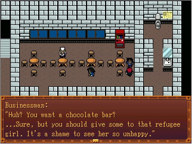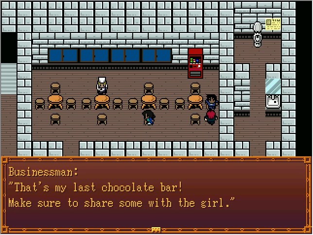 If you've been paying close attention, these sprites should look familiar. Back then they were just "Dark-Skinned Man" and "Jovial Man", since we don't encounter them on the manga route.