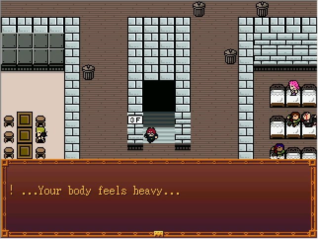 You're stuck with the Tired status effect on this entire floor. Tired means you move at half speed and take a bit of damage every step, which makes it a fairly true-to-life ailment.