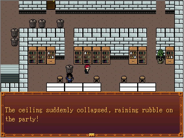 I assume you're keeping score. We're being chased by trash can mobs, the ceiling is falling on us, and we're moving at half speed. Fun!