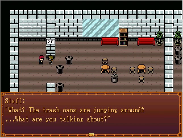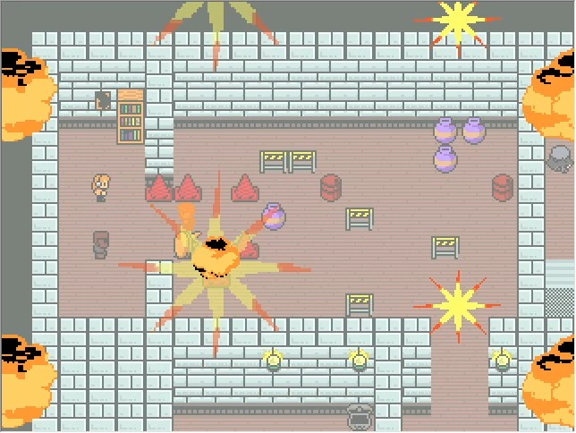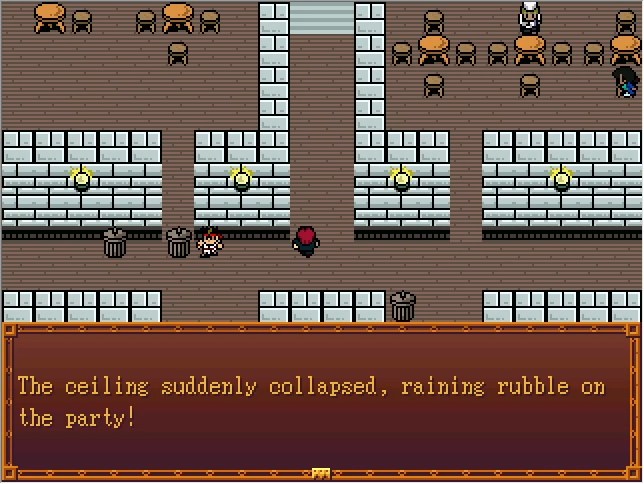 Besides the trash cans and locked doors, there's also rocks falling on us. Some of these are on set tiles, but others are randomly roving the map.