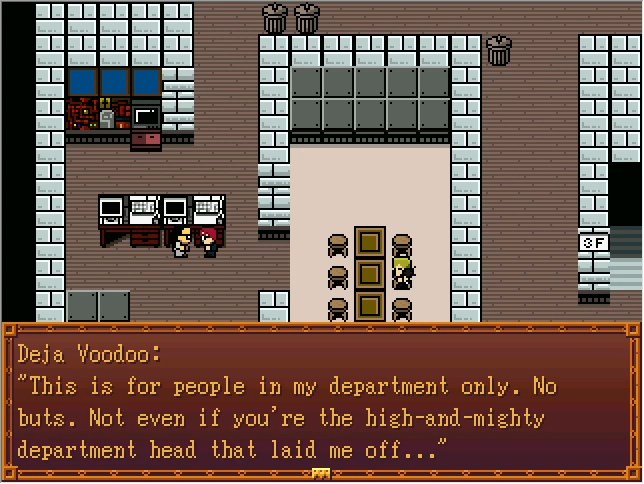We head back up to Deja Voodoo's floor, which has multiple stairways leading up.