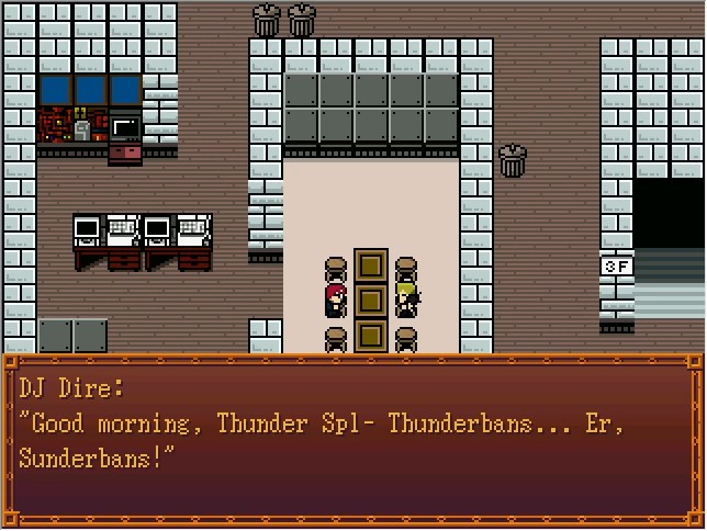 When I think of radio tower dungeons, I naturally think of Pokemon Gold/Silver. 7SU's Game Boy stylings might be doing some of the lifting there too.