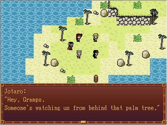 Bradio: Yes... It wasn't easy! Joseph: Ahh, sorry about that. Bradio:It was WAY more expensive than I thought... Joseph:Well... it can't be helped, I suppose. Bradio:That's, uh... that's it? Joseph:?? What do you mean? Cascada:(Damn rich people...) Joseph: We've been attacked by new Stand users each day, so it's been tough on our end as well. But by traveling at the bottom of the ocean, we should be able to avoid detective until Egypt. We'll depart later, under the cover of night. Bradio: I see... And the other four? Joseph: Jotaro and Kakyoin are keeping an eye out for potential attackers, and Abdul's studying the submarine manual. We've got everything covered. Polnareff took a walk around... I think it's because I reminded him of your "death". He should be back before nightfall. Bradio: Is that so...? I can't wait to see his face when he finds out the news. Joseph: Why don't you go meet him? Of course, there could still be an enemy on the island, so keep it quiet. Bradio: You got it.