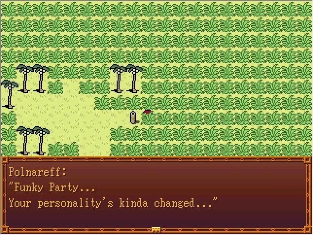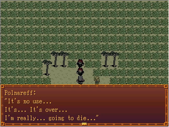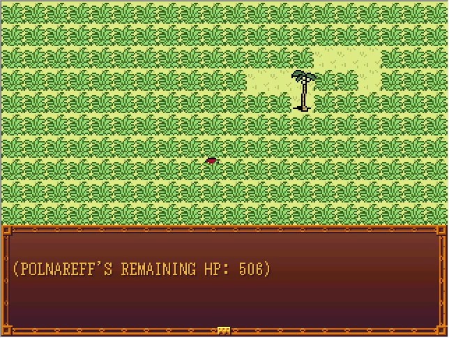 Like many elements in the game, the triggers for Polnareff taking damage are invisible event tiles scattered about the map and set to move randomly. A few of them do 30 damage instead of 10.