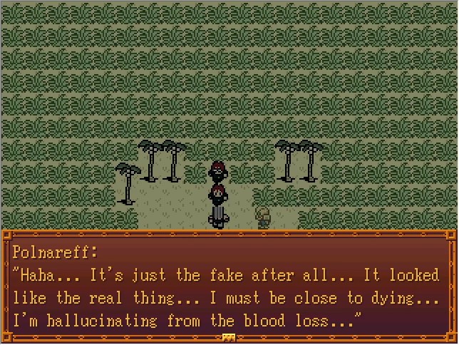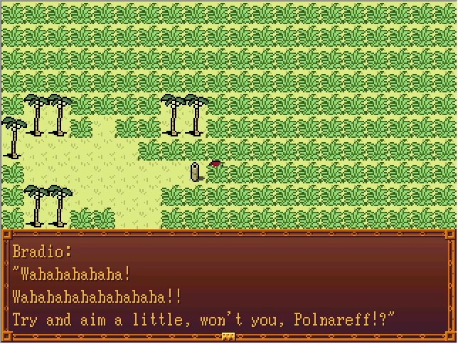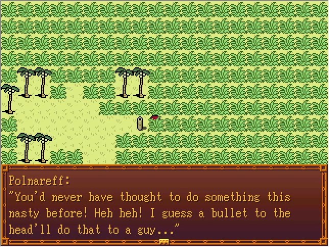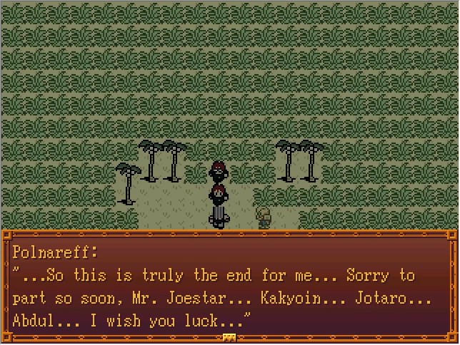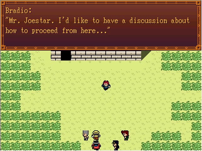 Bradio:Where do I go? I can barely see 10 feet in front of me like this... Steel: It seems Polnareff has encountered an enemy... If you don't find him soon, it'll be too late! Polnareff's remaining HP is 516. He has to be somewehre in this prairie! Bradio:...uh... Cascada:(Yeah, he's always like this.)