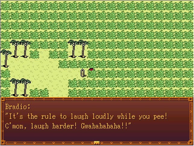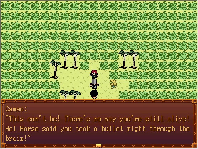 If I had a working install of RPG Maker 2000, it probably wouldn't be too difficult to go in and edit the event to just call your catchphrase instead of displaying "YES I AM!". Maybe another time.