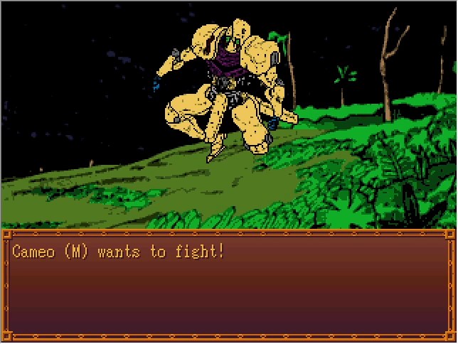 Cameo: You make a joke of this...!! Bradio: So you won't do it, Cameo!? You shouldn't make promises you can't keep! Cameo: Bradio! Do you want to have another fruitless test of strength!?