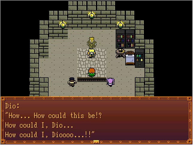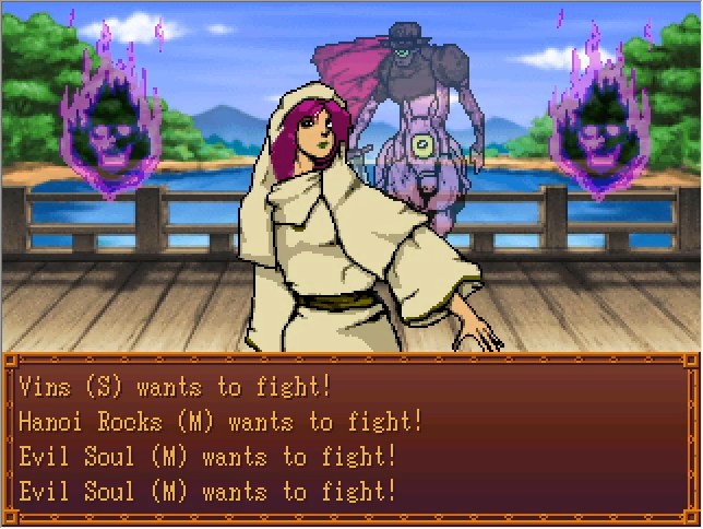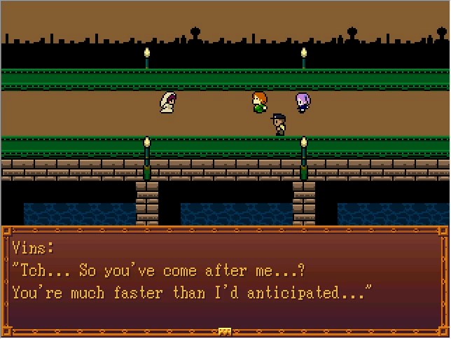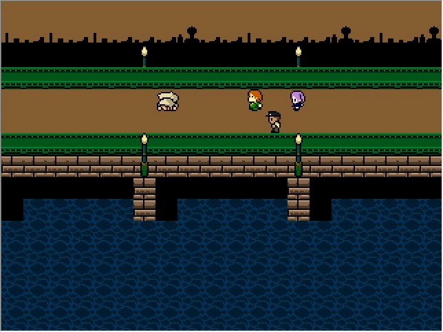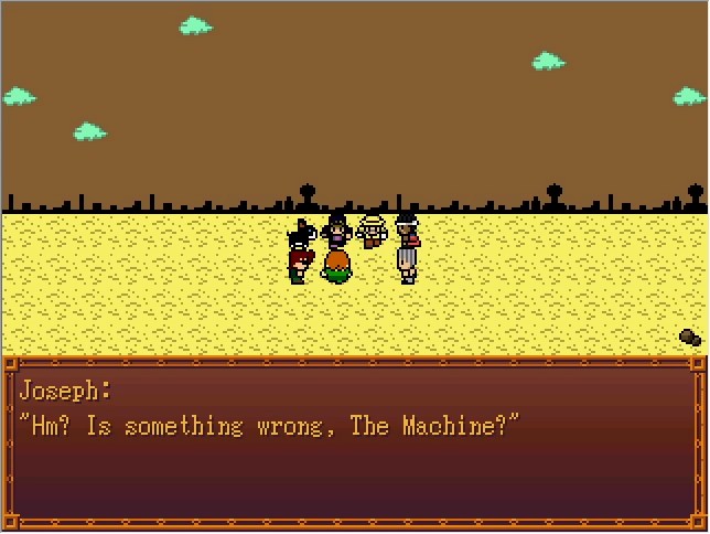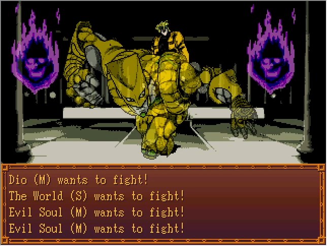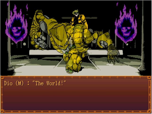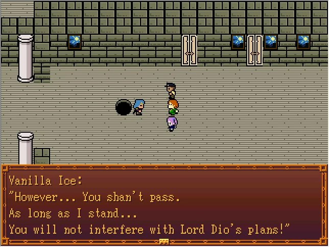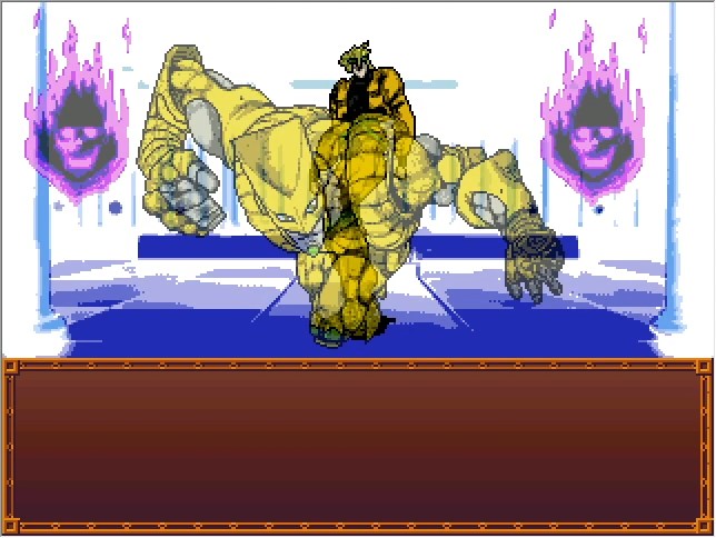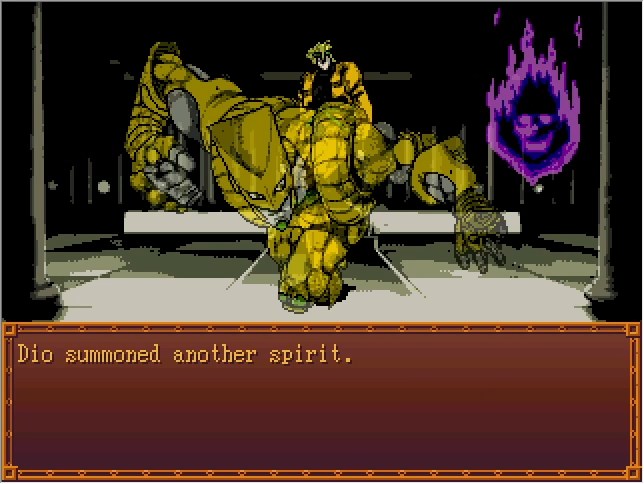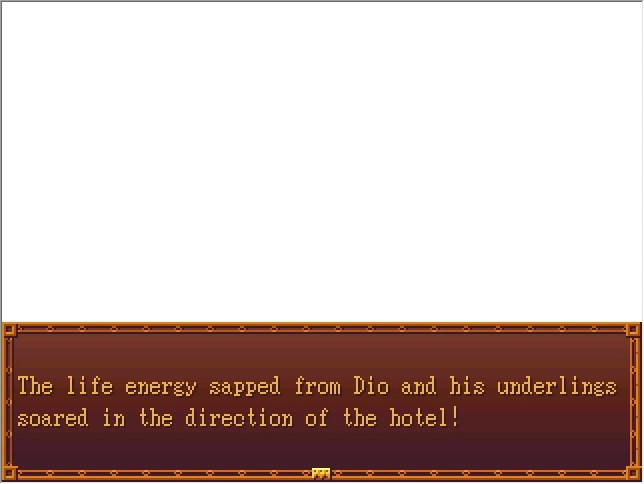 Ah jeez, looks like someone goofed up the settings on this fight. The event data calls for the "[bridge]" background rather than the "[moonlit-bridge]" one, which means we're on the generic RPG Maker bridge background instead of the JoJo bridge background.