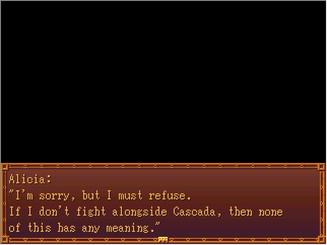 Cascada: You fight only for the sake of evil. To crush those weaker than you beneath your heels... No matter what fate has in store for me, I will never stoop to that level! That is my answer.