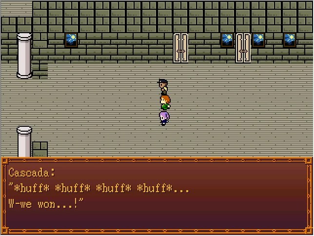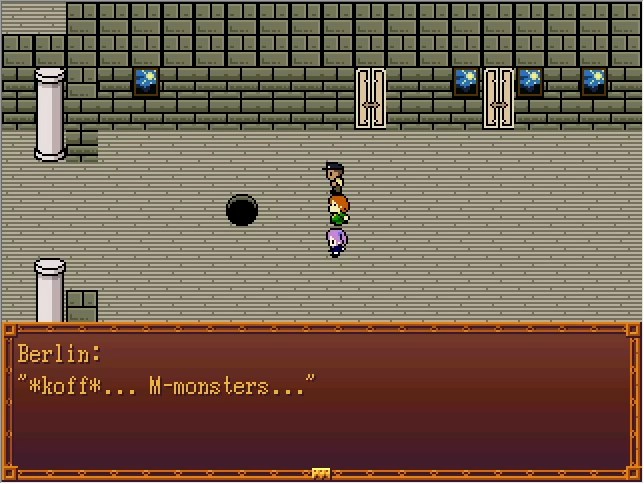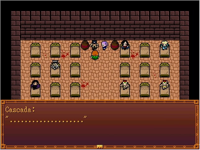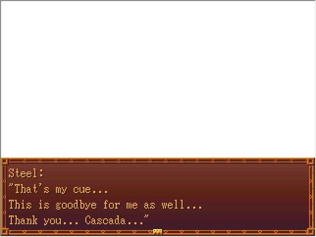 Cascada:-huff, huff, huff, huff- See... that... wasn't THAT hard... Alicia:Is it... really over? Steel: Not yet it isn't... Things aren't finished until the book called The Path To Heaven is destroyed. It should be in a library in the basement. Destroy it, and everything will be decided! Cascada: ...!! I-it's gone! "The Path To Heaven" is missing! Berlin: ...? Is this blood? It leads outside... Alicia: Let's follow it! If we don't destroy it soon...!