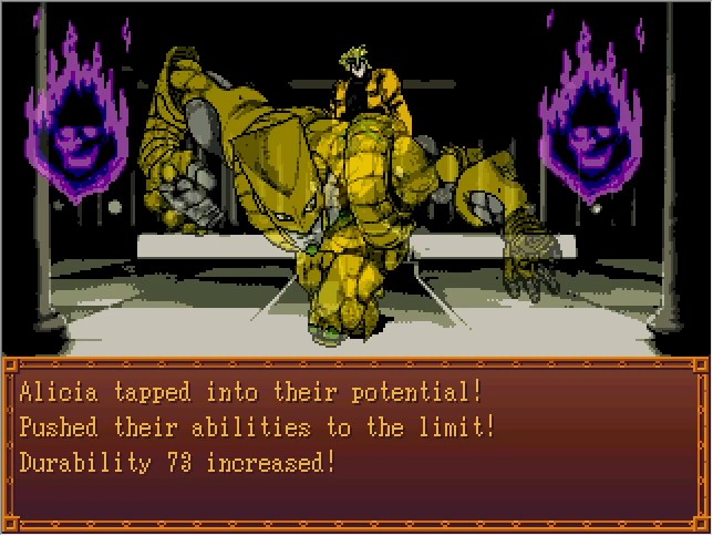 Dio isn't as actively annoying as D'arby, but we've seen what he's capable of already. At any moment he could choose to use Time Stop and then kill Alicia outright. She's gotta buff up.