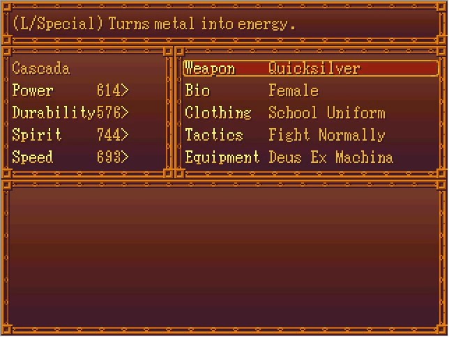 I suppose we are at least getting the most annoying battle out of the way first. D'arby's MindRead status ruins our accuracy and Cascada's multi-target attacks are too powerful; she'll kill him before we kill enough wisps.