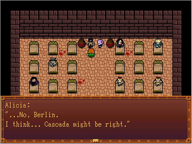 Alicia: It isn't just a question of readiness... If Cascada is truly to change fate, then they must have the final say... Fate will only change through Cascada's intervention. Our goal is to stop the events from proceeding according to the story we know. Berlin:......... Alicia: This way... Cascada's way... We might even gather life energy exceeding what those predestined deaths would have provided... Berlin: But where could we possibly get that much energy...!? Alicia: I'm... not sure... It's only a possibility... Berlin: .........We're here. We'll never know unless we try. Alicia: Yes...